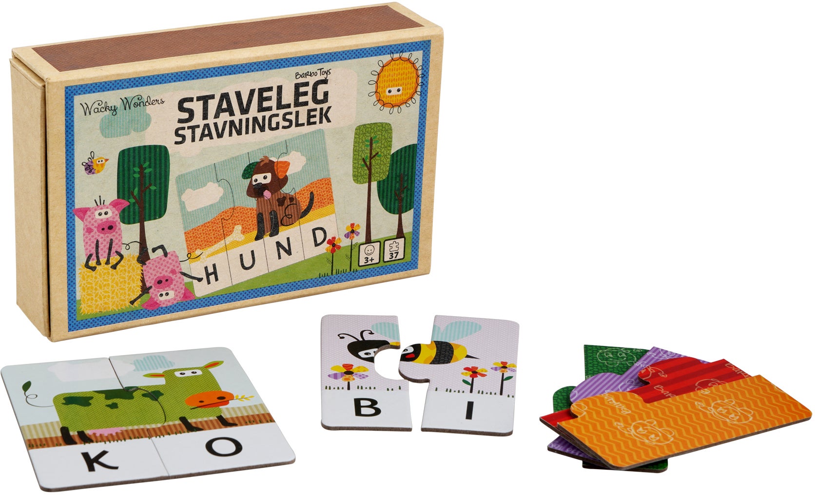 Puslespil fra Barbo Toys med sødt dyremotiv. Perfekt til pædagogisk og lærerig leg! - 37 brikker. - 10 minipuslespil, der lærer dig at stave til 10 forskellige dyr. - Lær de forskellige bogstaver og at stave. - Sødt dyremotiv. - Materialer af højeste kvalitet. - Udvikler hånd-øje-koordination. - CE-mærket. - Anbefalet alder: Fra 3 år.