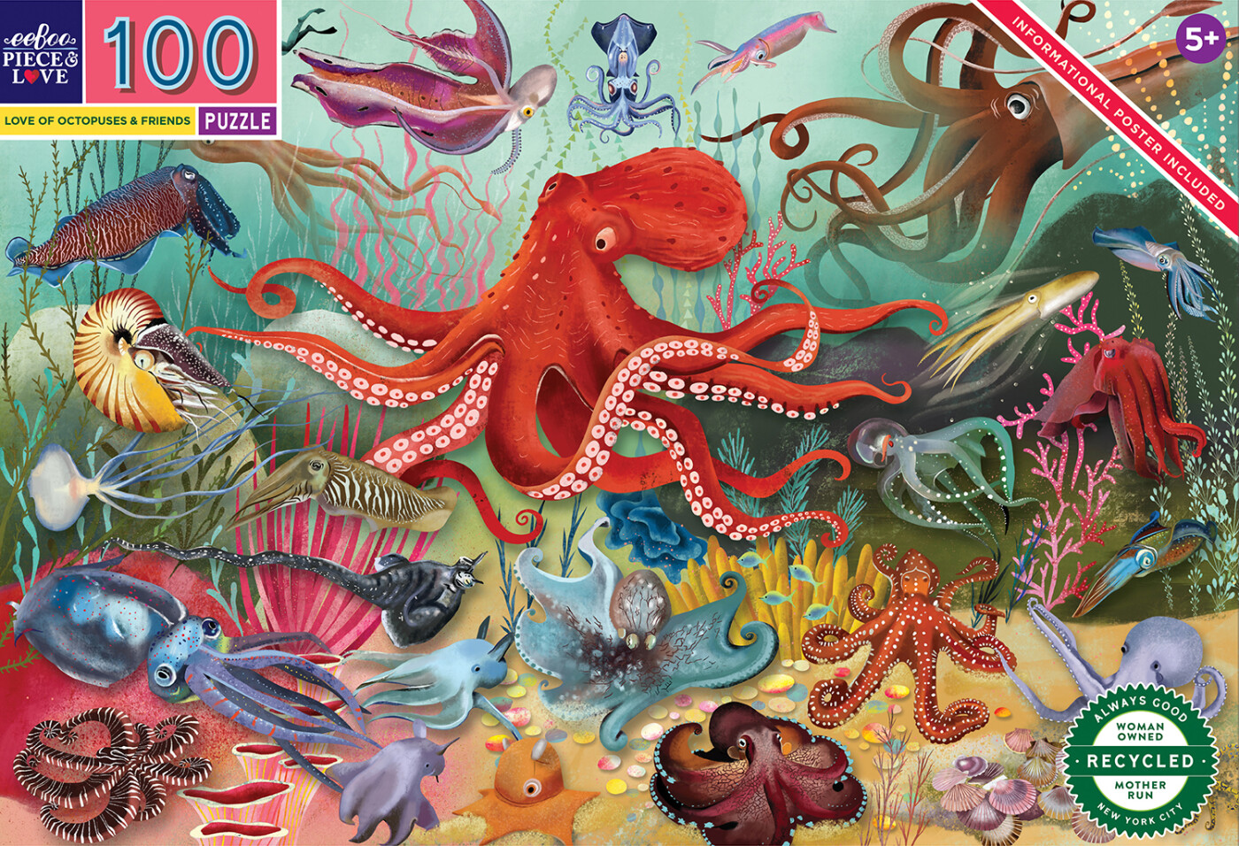 Eeboo - Puslespil 100 Brikker - Kærlig Hilsen Blæksprutten