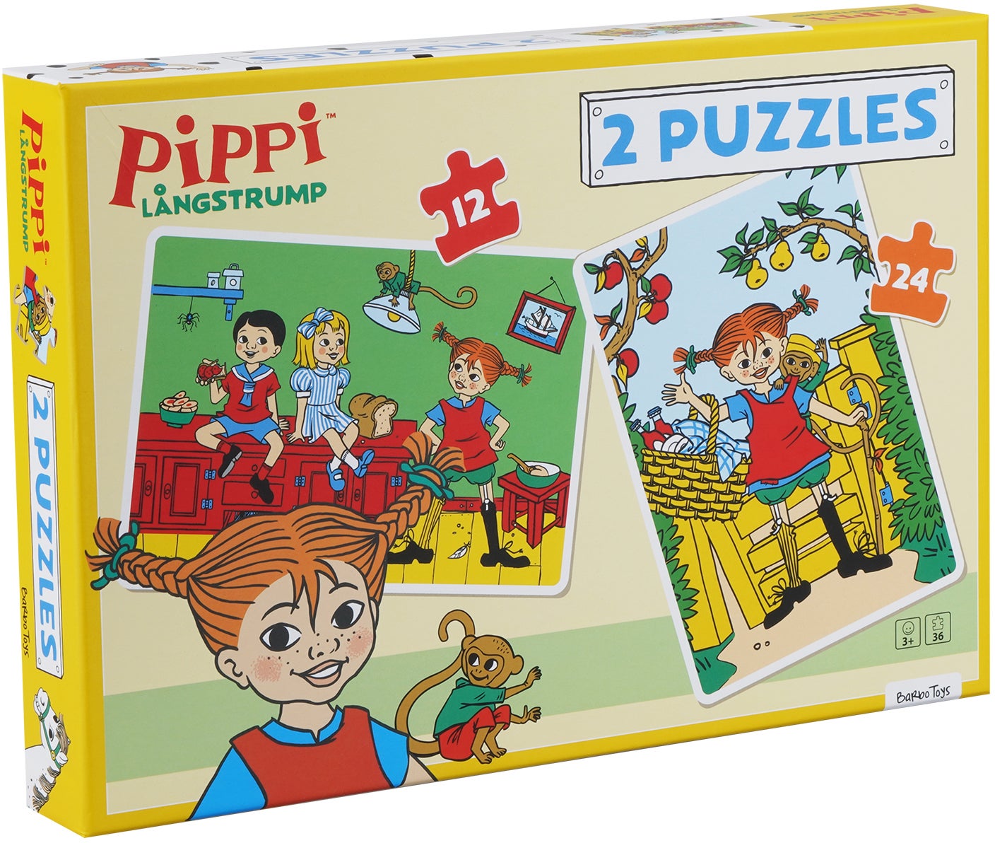 To puslespil fra Pippi Langstrømpe med sjove motiver af verdens stærkeste Pippi. Perfekte til træning af dit barns koordination og finmotorik. - Indeholder: 2 puslespil. - Brikker: 12 & 24. - Pippi Langstrømpe-tema. - Perfekt til udvikling af finmotorikken. - CE-mærket. - Anbefalet alder: Fra 3 år.