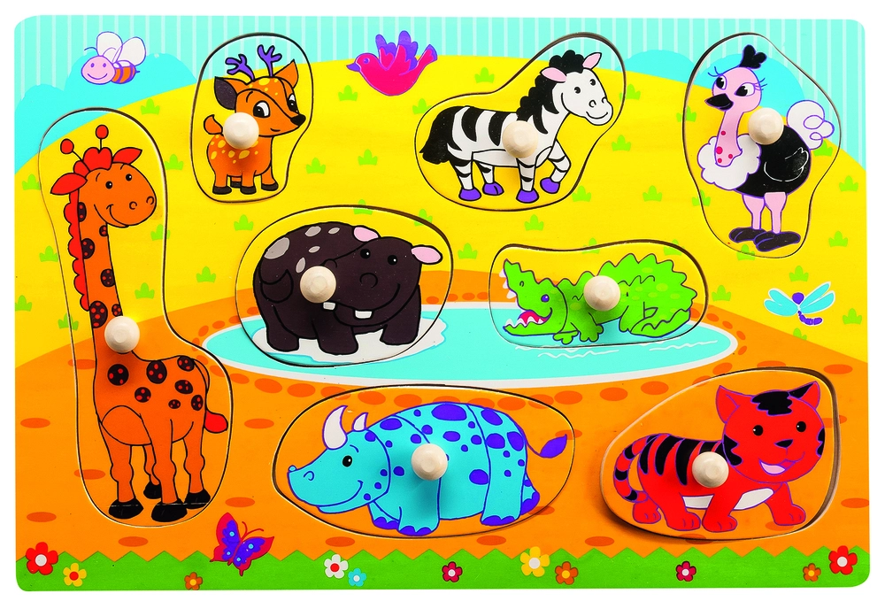 Trćpuslespil med store trćknopper 30x22,5 cm. Flere forskellige.