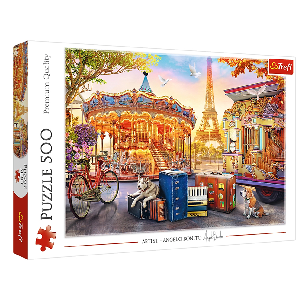 Holidays in Paris Et stemningsfuldt puslespil med feriestemning Drøm dig væk til byernes by med dette romantiske puslespil på 500 brikker. Holidays in Paris indfanger essensen af en ferie i Paris med hyggelige gader, ikoniske vartegn og den særlige stem
