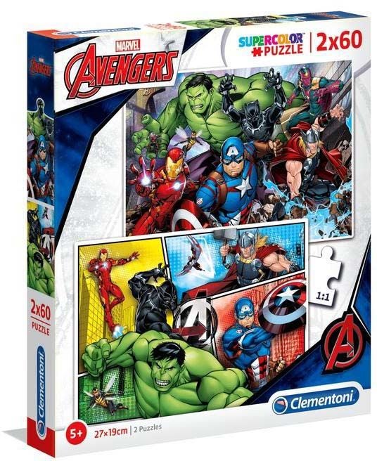 Et sæt med to sjove puslespil, der har motiv fra Marvel Avengers. Dette sæt består af to puslespil, der hver har 60 brikker, som sammen danner fine motiver af børnenes yndlingshelte fra Marvel Avengers. Med et puslespil kan dit barn lege og træne sin logiske sans samtidigt! Anbefalet alder: Fra 5 år.