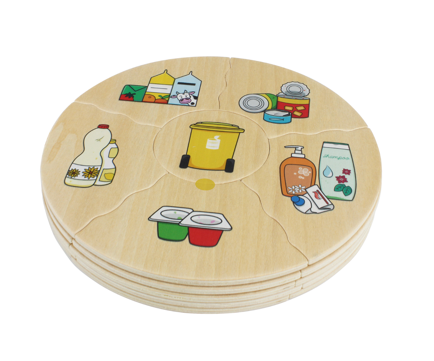 Beleduc - Puslespil i ęske - Affaldssortering, 5 stk. Er velegnet til Faglig viden,Nysgerrighed og passer til aldersgrupperne: 4 år,5 år,6 år