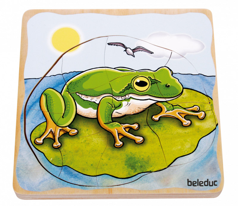 5 lag er der i dette fine puslespil om frĝens udvikling. Nederste lag er haletudser i en sĝ, og hvad der kommer bagefter, mċ i selv finde ud af. Men det ĝverste lag er en fiks og fĉrdig frĝ, klar til at kysse alverdens prinser og prinsesser. Som noget ekstra smart er dette puslespil i ramme, sċ det er nemt og endda dekorativt at opbevare.