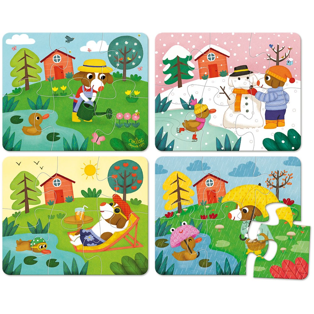 Vilac - Puslespil i træ - De 4 årstider, 4 x 6 brikker. Er velegnet til Finmotorik,Kognitive færdigheder,Observation og passer til aldersgrupperne: 2 år,2,5 år,3 år,4 år