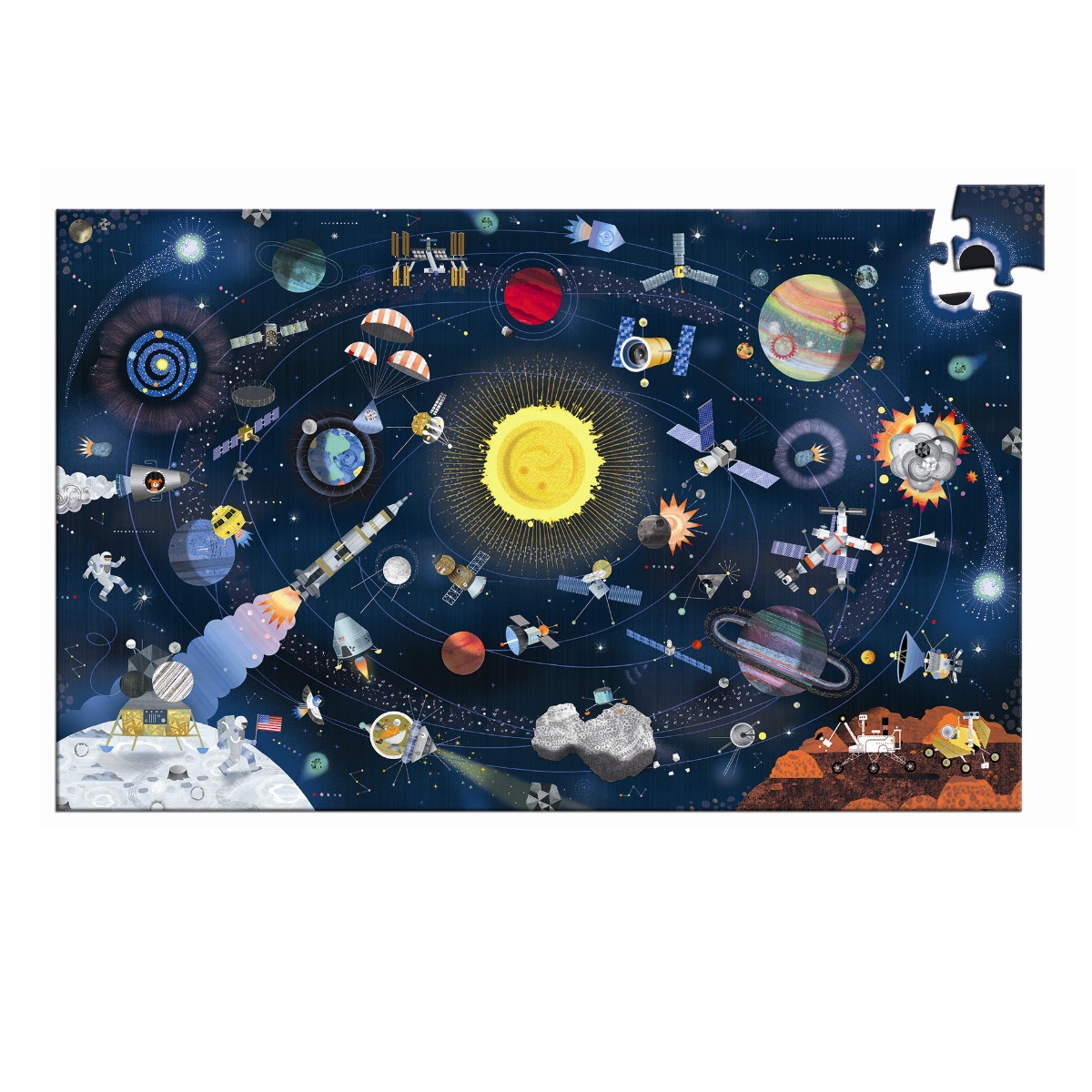 Dette skønne kvalitetspuslespil indeholder mange timers leg og læring. Motivet med de mange himmellegemer har masser af detaljer og kræver tålmodighed. Det er i den sædvanlige, lækre Djeco-kvalitet, hvor brikkerne er af tykt pap, farverne meget klare og så solide, at de ikke flosser i kanterne selv efter flere års brug. Der er også et fint hæfte med masser af informationer om rummet.