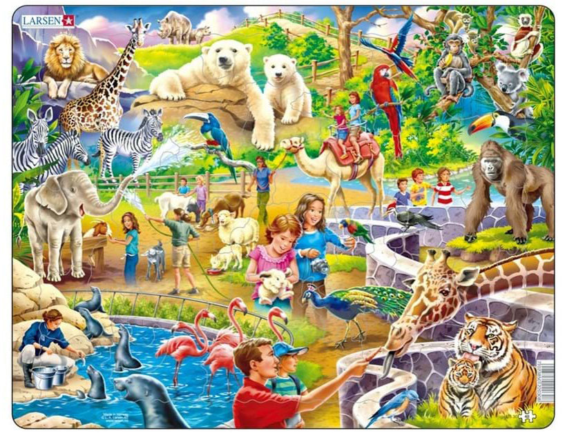 Larsen - Larsen puslespil - Zoo, 48 brikker. Er velegnet til Finmotorik,Kognitive færdigheder,Logisk tænkning og passer til aldersgrupperne: 4 år,5 år,6 år,7 år,8 år