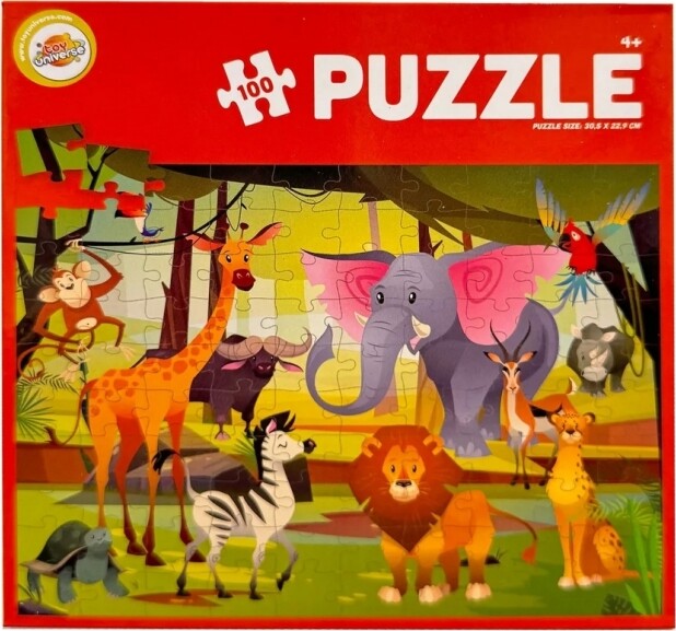 Puslespil 100 Brikker Vilde Dyr