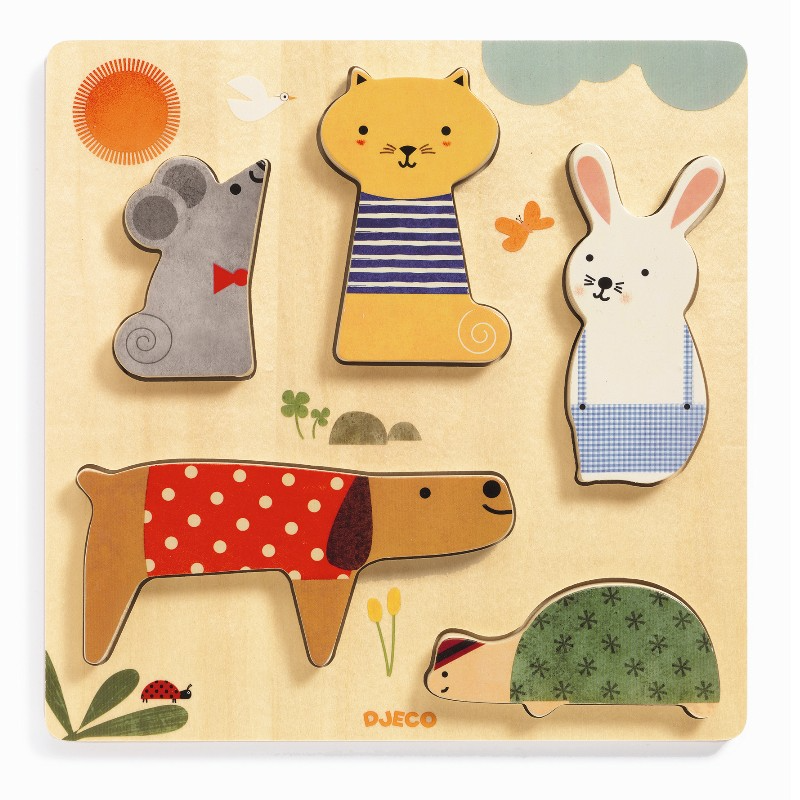 Djeco | Stablepuslespil med 5 brikker - Woodypets