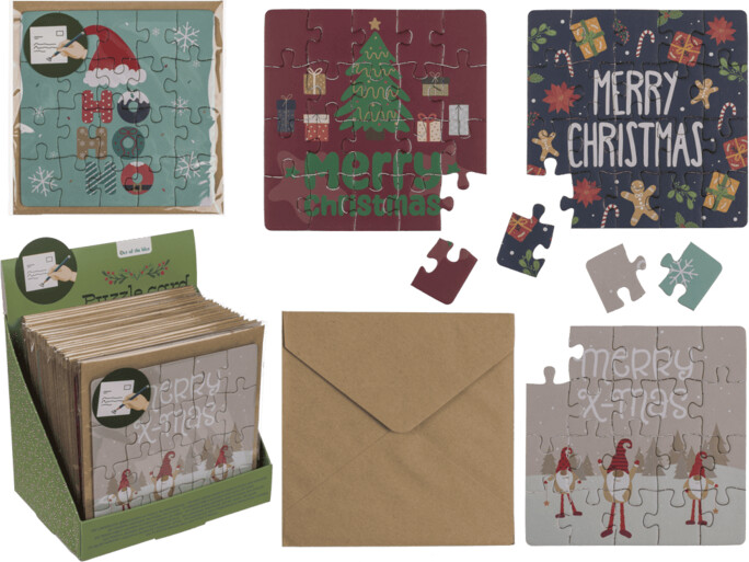 Julekort Puslespil Med 20 Brikker - Inkl. Konvolut - Overraskelse