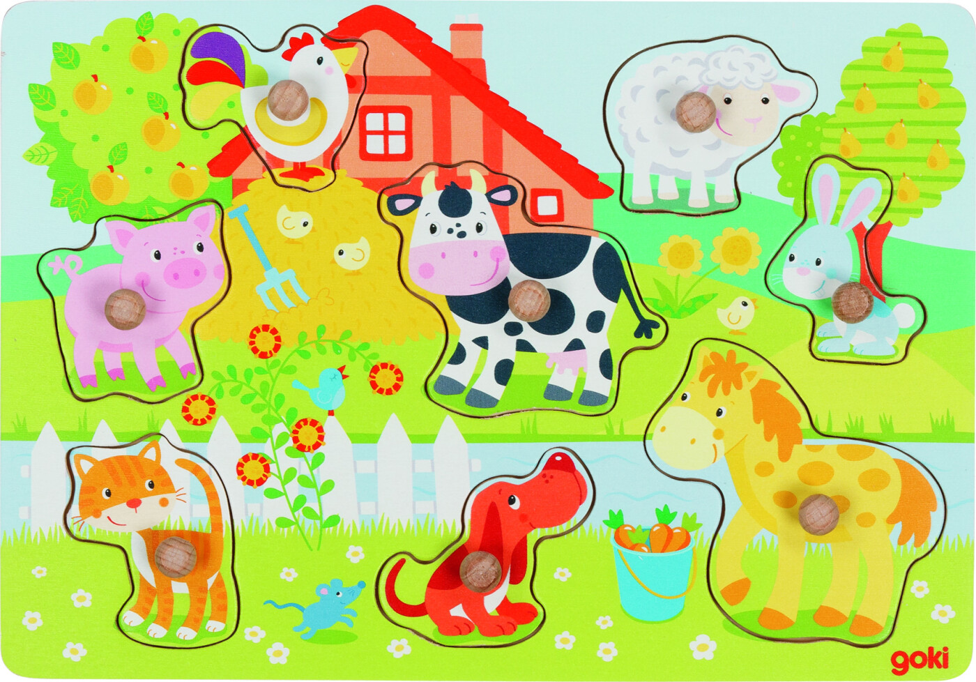 Goki Knoppuslespil - Bondegårdsdyr - Træ - 8 Brikker