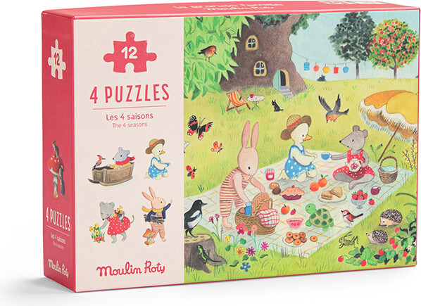 Moulin Roty - La Grande Famille Mini Puslespil - 4x12 Brikker - årstiderne