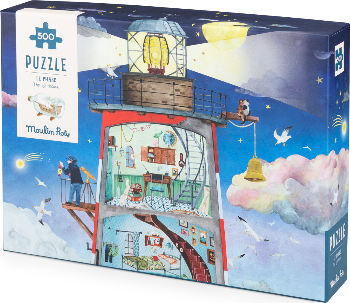 Tag med på en rejse til havet med Moulin Roty - Le Phare puslespillet. Dette smukke puslespil består af 500 brikker og præsenterer et fortryllende fyrtårn, der er designet til at fange børns fantasi og stimulere deres nysgerrighed.