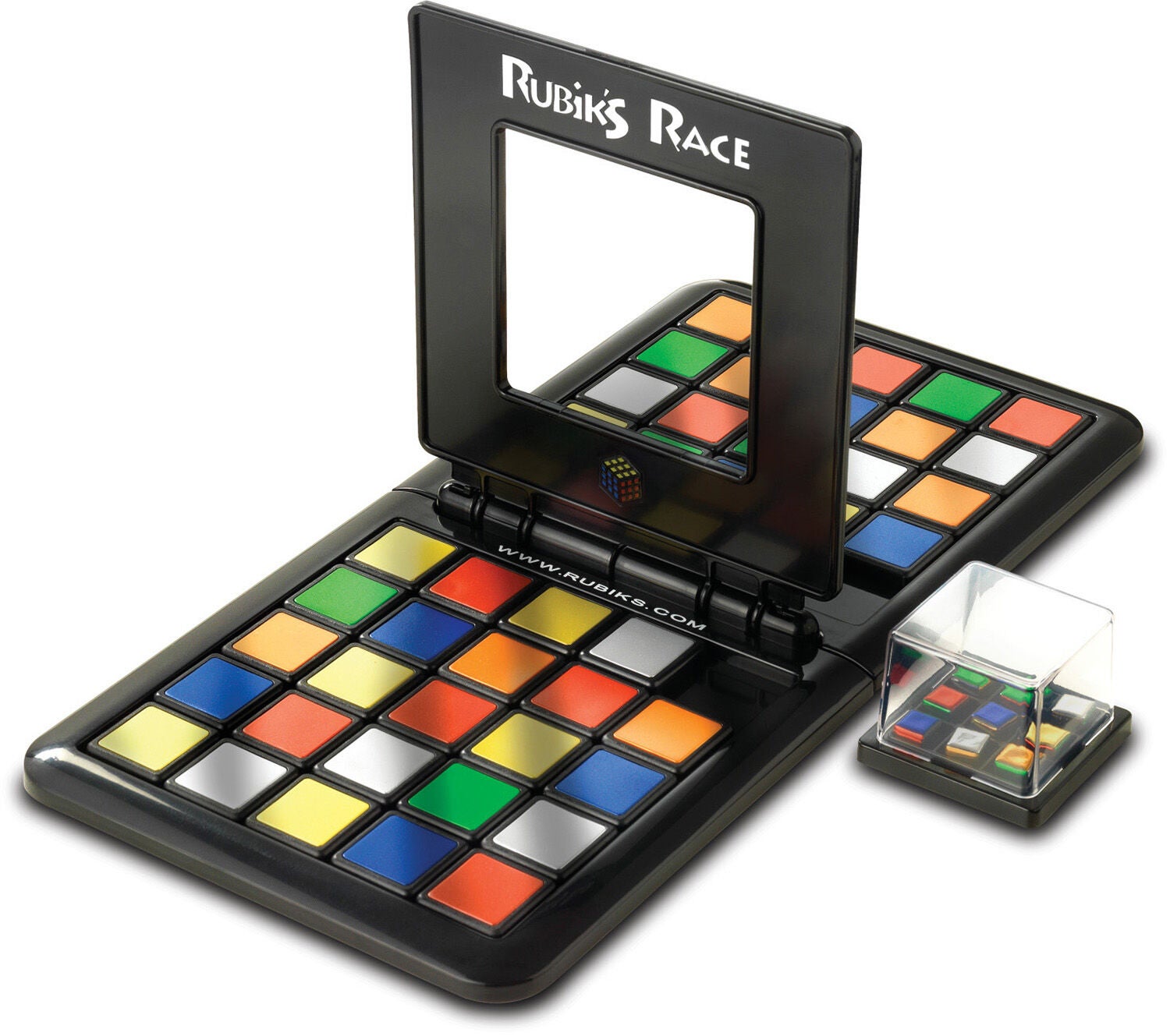 Multifarvet Race Game brętspil fra Rubiks. Match mųnsteret på rammen med de farvede brikker på bręttet. Anbefalet alder: Fra 7 år