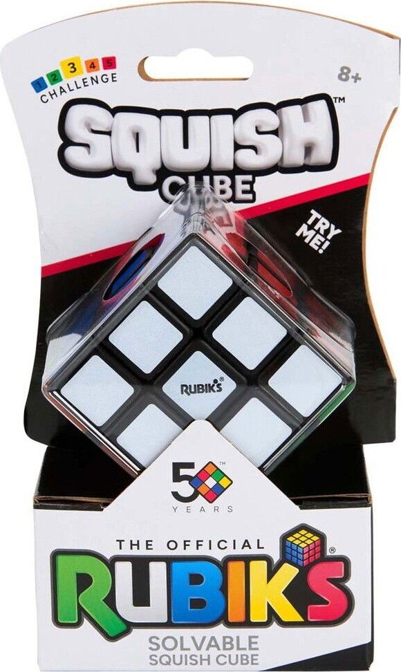 Rubik’s Squish Cube er en blød og fleksibel version af den ikoniske 3x3 terning, som ikke skal drejes og løses – men derimod klemmes, presses og nulres. Den er skabt til at give en beroligende og sanselig oplevelse, samtidig med at den ligner den velkendte Rubik's Cube ned til mindste farvefelt.