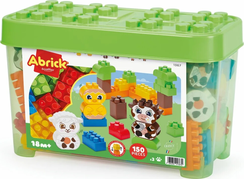 ECOIFFIER Abrick er en samling af klodser og sæt, der hjælper småbørn med at udvikle finmotorik og kreativitet gennem leg. Dette Farm Barrel indeholder 150 byggeklodser i forskellige farver og former, perfekt til at skabe fantasifulde bondegårdscenarier.