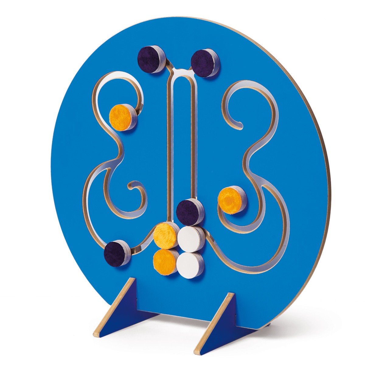 Man kan enten bruge den alene eller to og to, hvor man sidder på hver side, og her kan man enten skiftes til at flytte en knop, eller man kan bestemme, hvem der skal flytte en, og så holder det andet barn fat i den på den anden side, og lader sig føre.Det er også en god ide at træne koordinationsevne, hvor man tager fat i de to knopper med samme farve, og fører dem identisk rundt i rillen, det vil træne højre og venstre hjernehalvdel.Materiale: birkefiner med laminat, som gør rengøringen til en leg.Mål: 55 cm i diameter.