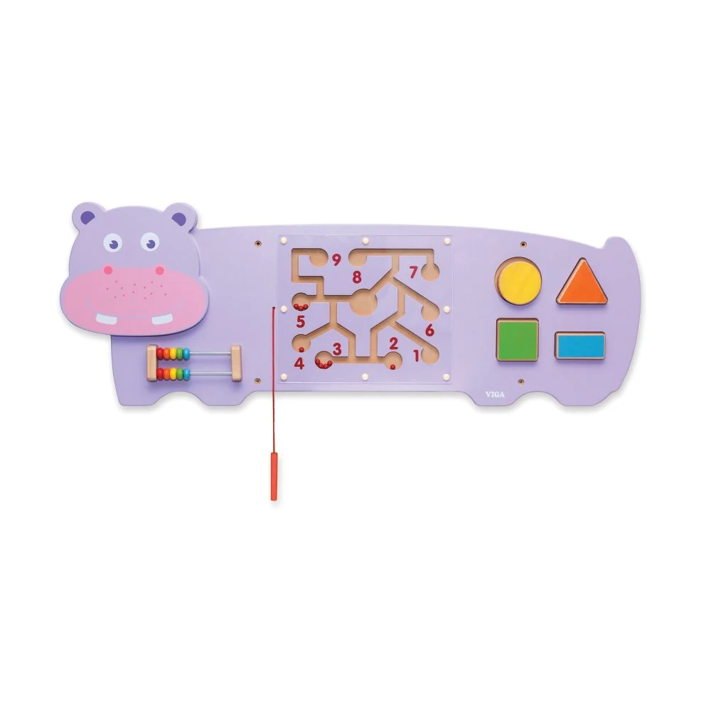En fin og charmerende flodhest, som indeholder en lille kugleramme, en magnetisk labyrint og form/farve legeklodser med magneter.Med legetøjet på væggen opnår I flere fordele både for børnenes motorik og for de voksne, der skal tage sig af at skabe udviklende miljøer for børnene i dagligdagen: 1:Legetøjet er altid ved hånden, og der skal ikke bruges personaleressourcer på at tage frem og pakke væk2: Der er altid motorisk stimulerende aktiviteter indenfor rækkevidde for børnene3: Der er ikke smådele, der kan blive væk, gå i stykker eller være til fare for de mindste børn. Det gør vægpaneler yderst velegnede til integrerede stuer i institutioner.