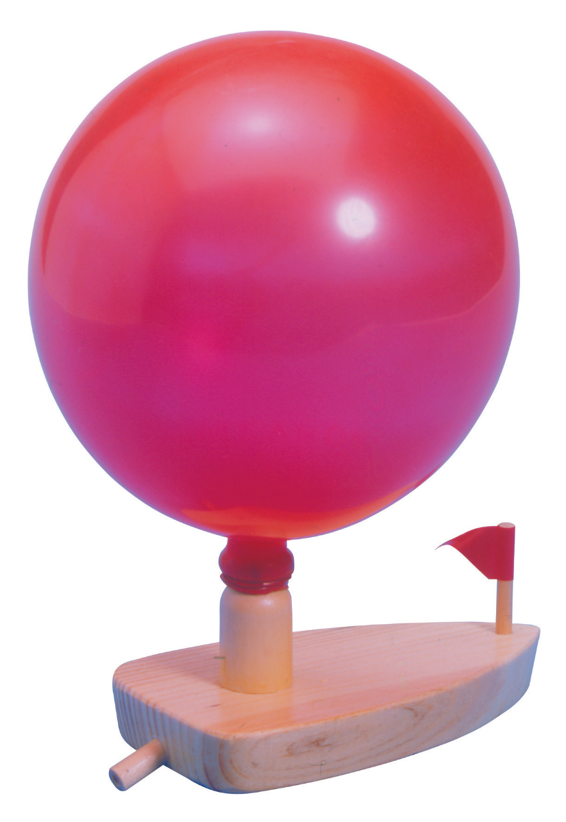 Denne træbåd drives frem af luften i ballonen. Sæt gang i dit barns nysgerrighed og forståelse for vindkraft og årsag-virkning. Lad dit barn være med til at puste ballonen op - det er god træning af mundmotorikken, som skal bruges til at fløjte og udtale forskellige ord.Eller pust ballonen op selv, sæt den på båden og se båden futte afsted - fx i badekarret, hvor den måske kan distrahere dit barn, mens du fyrer shampoo i håret og får det skyllet ud i en fart.