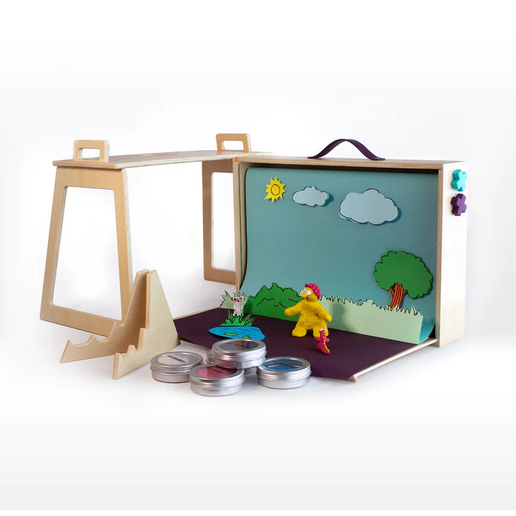 At lave animerede film er en drøm for de fleste børn og preteens. De gør det i mange skoler, og på de sociale medier møder vi animerede film om alt fra flødebollefremstilling og indstallering af emhætter til fastelavnsmakeup og bleskift. Dette meget lækre animationsstudie skaber en fantastisk ramme om det at lave animerede film. Det er superlækre bagtæpper, redskaber og modelleringsmaterialer til at hjælpe dit barn til at lave utallige film helt selv. Børn ved godt, at film er en af de vigtigste formidlings- og underholdningsmedier i dag, og det giver utrolig god mening at lade dit barn have det rigtige udstyr til at eksperimentere med at lave film derhjemme.Det er også en langt bedre måde at arbejde med den digitale verden end at sidde passivt foran en skærm og se andres film eller spille andres spil på en konsol eller online. Byg, skab, gør selv - det øger dit barns kreativitet, selvværd og giver fantastiske muligheder for at dele filmene og oplevelserne med andre børn i et skønt, kreativt fællesskab.Animeret betyder bevægelse, så fidusen med Piximakey er, at I kan lave film derhjemme om ting, der egentlig ikke bevæger sig af sig selv.I kan fx lave stop-motion film om Hr Agurk, der møder Frøken Clementin og går i stykker af bar forelskelse, hvorefter den kække Hr Agurk ender på en leverpostejsmad. Stop-motion film er den slags, hvor man tager et foto ad gangen og derefter sætter alle fotos sammen i høj hastighed, så det ligner en film.Det kan man lave med hvilken som helst hovedrolle - og med i dette sæt er der 5 farver meget lækker modelleringsmateriale af oliebaseret plasticine, som ikke tørrer ud. Med det kan I modellere lige de hovedroller, I har lyst til - og I kan også nemt blande de 5 basisfarver på kryds og tværs. I kan også lave film om nyfangede mariehøns fra haven, så længe de ikke kravler væk. Eller om dit barns tegnede figurer. Om hele batteriet af hestefigurer eller alle lastbilerne. Eller om noget, I bager eller kokkererer, som I filmer undervejs. I kan fx bage en fødselsdagskage til Mormor og filme processen, så hun føler, at hun er med i køkkenet. I kan også lave en tegnet gennemgang af verdenshistorien eller handlingen i Starwars 3 eller måske Hakkebakkeskoven.I skal bare sætte scenen op, vælge baggrundstæppe, vælge om I skal arbejde i 2D eller 3D, vælge om I vil filme med tablet eller smartphone, downloade den gratis app, og så kan filmprocessen starte. Vejledningen er på 29 sprog og nem at gå til - omend med lidt små bogstaver, så læs den, før I går i gang. Udover selve den kreative proces, så kan planlægningen også være en meget lærerig aktivitet for dit barn. At skabe overblik over, hvordan man kommer fra A til Å i en kreativ proces kræver, at I både skriver bogstaver og tal ned på en skematisk form, og det er meget nyttigt at lære at lave en plan og følge den. Måske også revidere den og sænke ambitionerne.Denne lækre kuffert af krydsfiner skal bare åbnes, og så kan I gå i gang. Piximakey er også god til en gruppe af børn i skolesammenhænge, hvor der indgår projektundervisning. Kvaliteten er høj, så det vil kunne bruges om og om igen.Piximakey indeholder: Stativ til at filme oppefraStativ til at filme fra siden, forfra eller bagfraBagtæpper i 2 farver på rulleKufferten udgør scene og bagscene5 slags oliebaseret plasticine-modelleringsmasse i aluminiumsæsker med glaslågHurtig, illustreret vejledning og guide-bog på 29 sprogAdgang til gratis app i App Store og Googleplay, som på helt enkel vis gør det nemt at optage og redigere film.OBS:Modelleringsmassen består af en blanding af mineraler og organiske fedtstoffer. Den fremstilles primært af naturligt forekommende calcium salte, tilsat kulstofsyre og vaseline, som blødgører.Da modelleringsmassen er oliebaseret, kan den ikke blødgøres med vand. Den tørrer dog ikke ud og efter producentens oplysninger kan den henligge uden låg i flere år og stadig anvendes.Det minder om produktet Soft Fimo ler og kan ligesom Fimo og andre plasticine-produkter have en svag, kemisk duft, som du ikke behøver bekymre dig om. Produktet er CE-mærket og godkendt efter EU-lovgivning ligesom alle vores andre varer her i Legeakademiet.