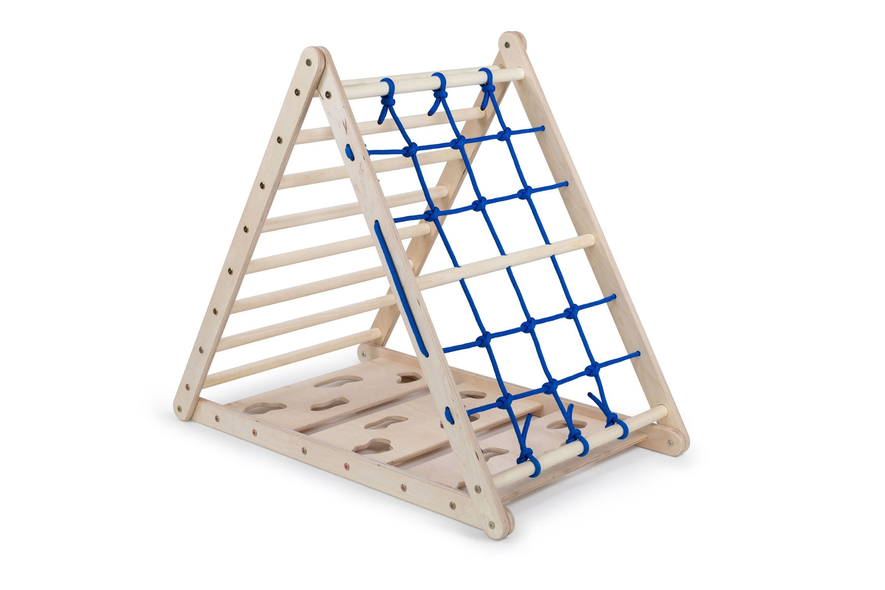 Denne klatretrekant har 3 sider, der alle kan tilbyde dit barn forskellige former for grovmotorisk og/eller fantasileg.En side med ribbe, en med klatreplade og en med reb. Orang-Utan kan bruges til alle mulige former for klatrelege helt fra dit barn er 9 mndr, hvor det mest handler om at hive sig op at stå og måske tage sine første skridt. Senere hen kan dit barn klatre over, under, henover og ellers give sig i kast med at udfordre sine kompetencer på en hel masse måder på Orang-Utan. Den er også nem at gøre til en rutsjebane eller sætte sammen med andre Kletterling-elementer.