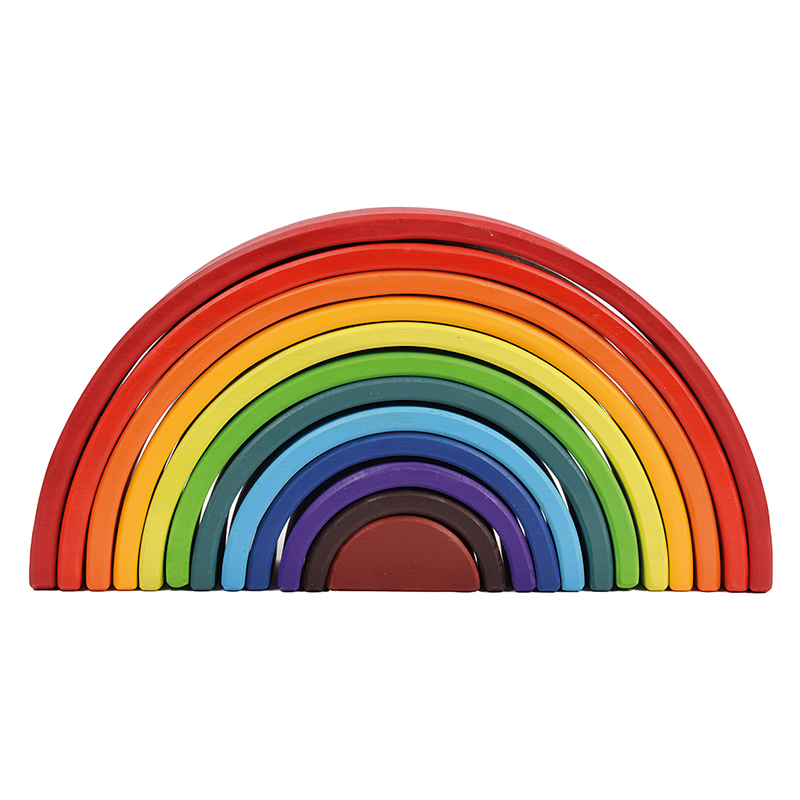 Flot regnbue af træ som opfordrer dit barn til at finde på utallige måder at lade den indgå i legen som broer, tunneller eller byggedele til at skabe et flot, kulørt tårn. Og så er den virkelig pæn at have stående på børneværelset eller i stuen.
