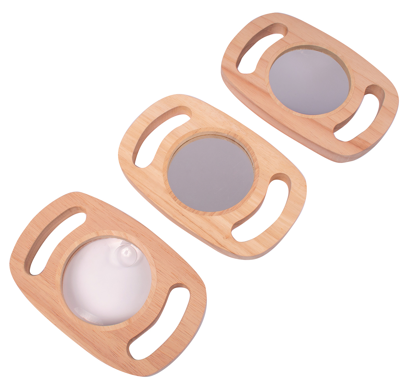 Disse paneler forandrer dit barns oplevelse af verden, så den bliver endnu mere spændende at kigge på. Her er 3 forskellige: et spejl, en konkav rude og en, der er helt gennemsigtig.