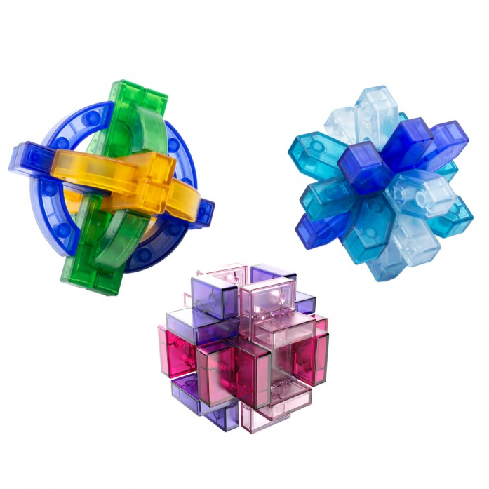 Disse 3 kuber består af mindre dele, der ikke er lige til at samle igen. kvikke hoveder og nysgerrige fingre kan forsøge sig, og udfordringerne passer fra ca 8 år.