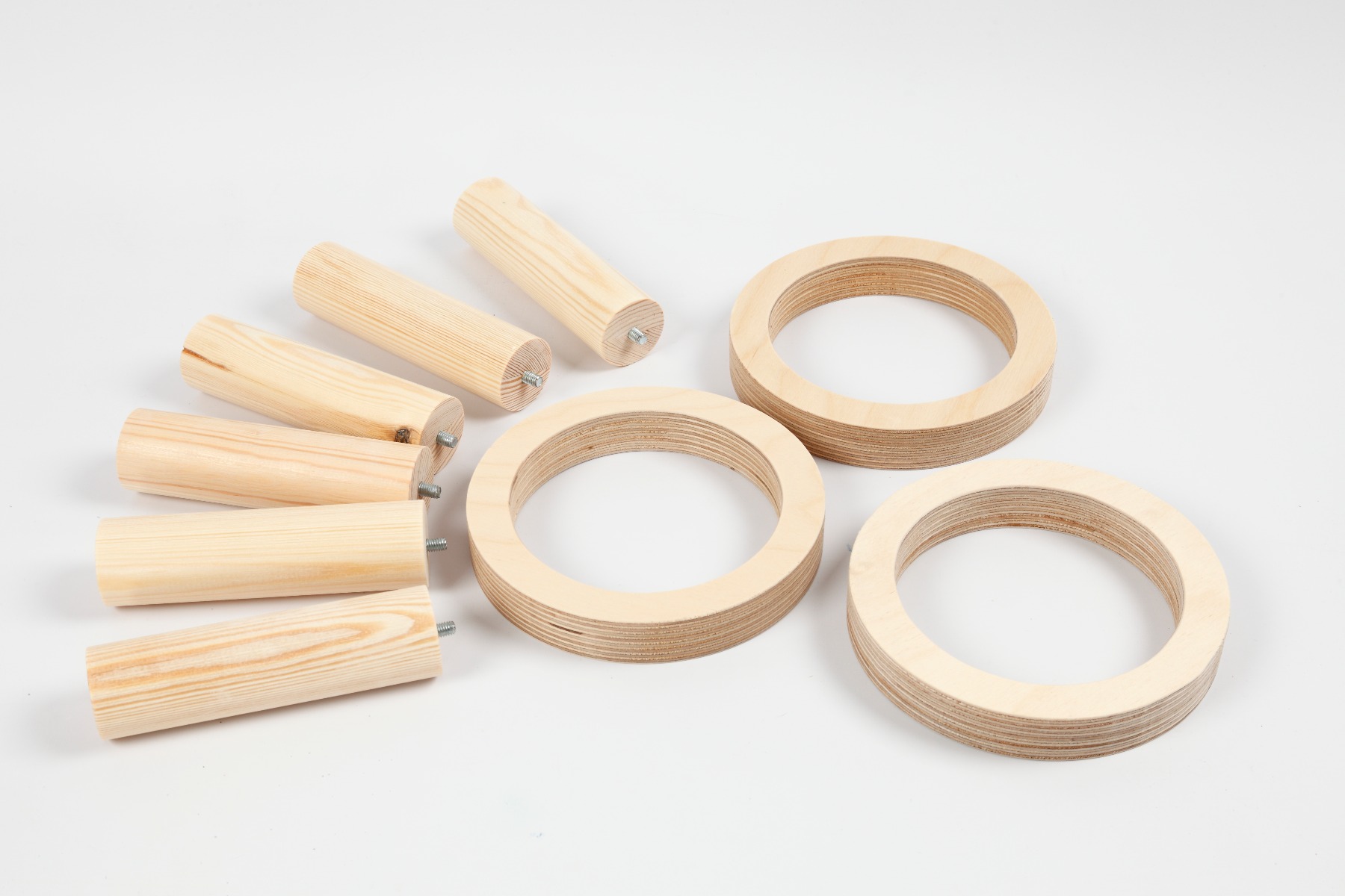 Giv dit klatrestativ helt nyt liv og endnu flere legemuligheder med dette sæt. Her er 6 pinde, som er nemme at skrue på din rutchebane i de gevind, der allerede er på den.Dit barn kan klatre på ad rutchebanen ved at holde fast i pindene, eller I kan spille ringspil ved at kaste træringene og ramme pindene med dem. Den, der får flest ringe på pindene, har vundet. Fremstillet af FSC-certificeret træ. Passer til denne serie af klatrestativer og ikke til Triclimb.