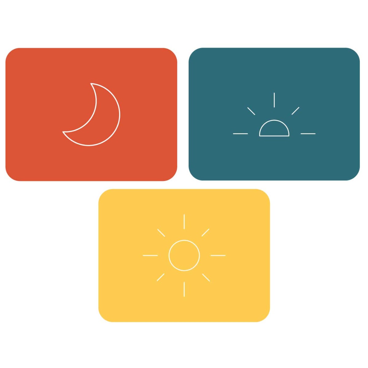 Disse 3 fine magneter passer til magnettavler, og de viser 3 forskellige tidspunkter på dagen. Super gode til at strukturere dagens begivenheder og gøremål.