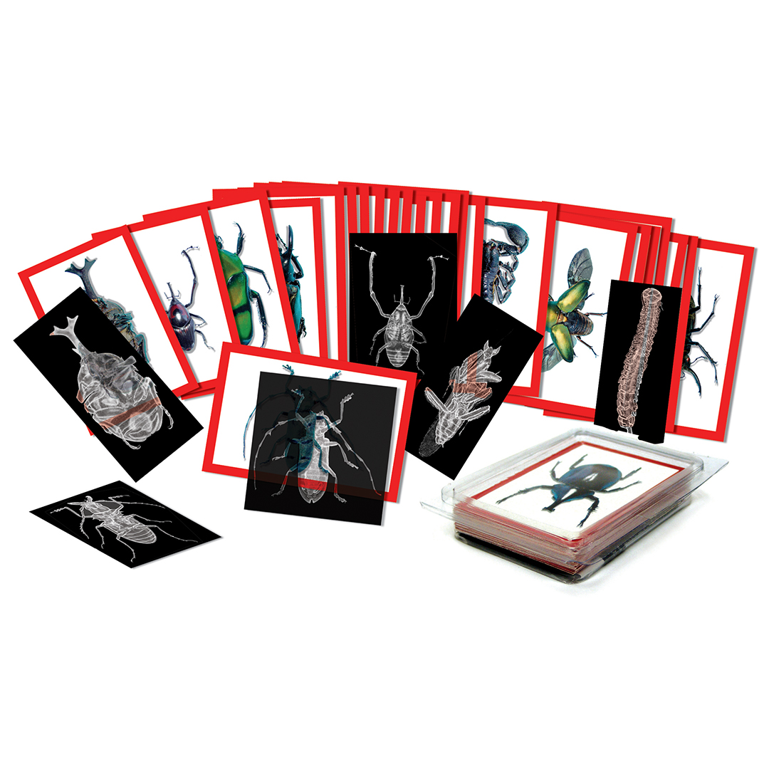 Har dit barn elsket biller og insekter siden det første øjekast på en mariehøne eller edderkop? Og har du skulle svare på, om der er ægte guld på en guldsmed og hvor højt op i himlen mariehønen flyver, når den beder om godt vejr. Med disse 36 seje røntgenbilleder af insekter kan lærere eller forældre gøre børnene klogere på insekterne på en ny og sjov måde. Små entomologer kan studere insekternes anatomi og samtidig lære om, hvor sejt røntgen er til at vise organismers struktur og opbygning. Det kan give gode snakke om, både hvad røntgen egentlig er for noget og hvordan man kan genkende insekterne fra hinanden. Brug røntgenbillederne af insekter i biologiundervisningen til at snakke om dyrenes anatomi og hvilke fordele og ulemper, deres krop giver dyret. Eller køb røntgenbillederne til hjemmebrug, hvor du kan stimulere dit barns nysgerrighed og interesse for dyrene og naturen. Ægte røntgenbillederPrintet på holdbart plast36 røntgenbilleder af forskellige insekter36 matchende billeder Kan bruges med lysboks/lysbord, overhead eller blot holdes op mod vinduet