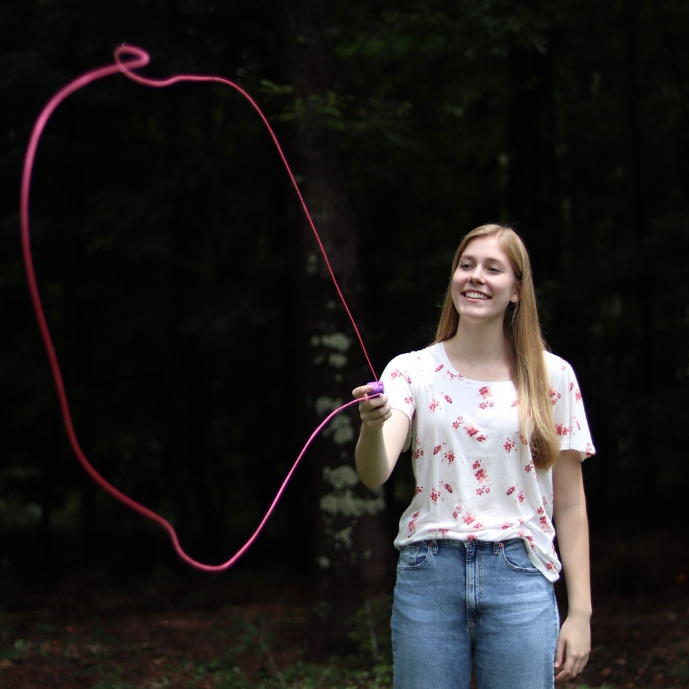 Tre af Legetanterne så første gang ZipString da de var afsted på legetøjsmesse. Og de var ved at gå ud af deres gode cardigans over synet af den nærmest magiske løkke, som flyver i luften og bølger med dine bevægelser uden ret meget hensyn til tyngdekraften.Med lidt øvelse kan du lave sjove og seje trics med snoren. Den største løkke er fx så stor, at I kan øve jer i at én holder ZipStringen mens den anden prøver at hoppe igennem løkken, uden at snoren klasker sammen.Ret sej at vise frem ude på vejen eller i skolegården eller til at øve tricks mens I står og venter på toget eller bussen. Det vil helt sikkert vække opmærksomhed.Skan QR-koden på æsken og se videoer, hvor du kan blive inspireret og lære at lave tricks.Oplades med USB-C og giver en brummen, mens løkken flyver. (Batteriet er et 1x3,7V Li-ion batteri).Med tre størrelser snore i forskellige farver.Driller det med at sætte snoren rigtigt fast bagpå? Så tjek ZipStrings hjemmeside for vejledning.
