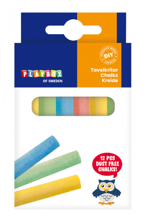 Playbox - Tavlekridt - Kulørt, 12 stk. Er velegnet til Finmotorik,Kreativitet,Tilbehør og passer til aldersgrupperne: 3 år,4 år,5 år,6 år,7 år,8 år,9 år,10 år,11 år,Senior