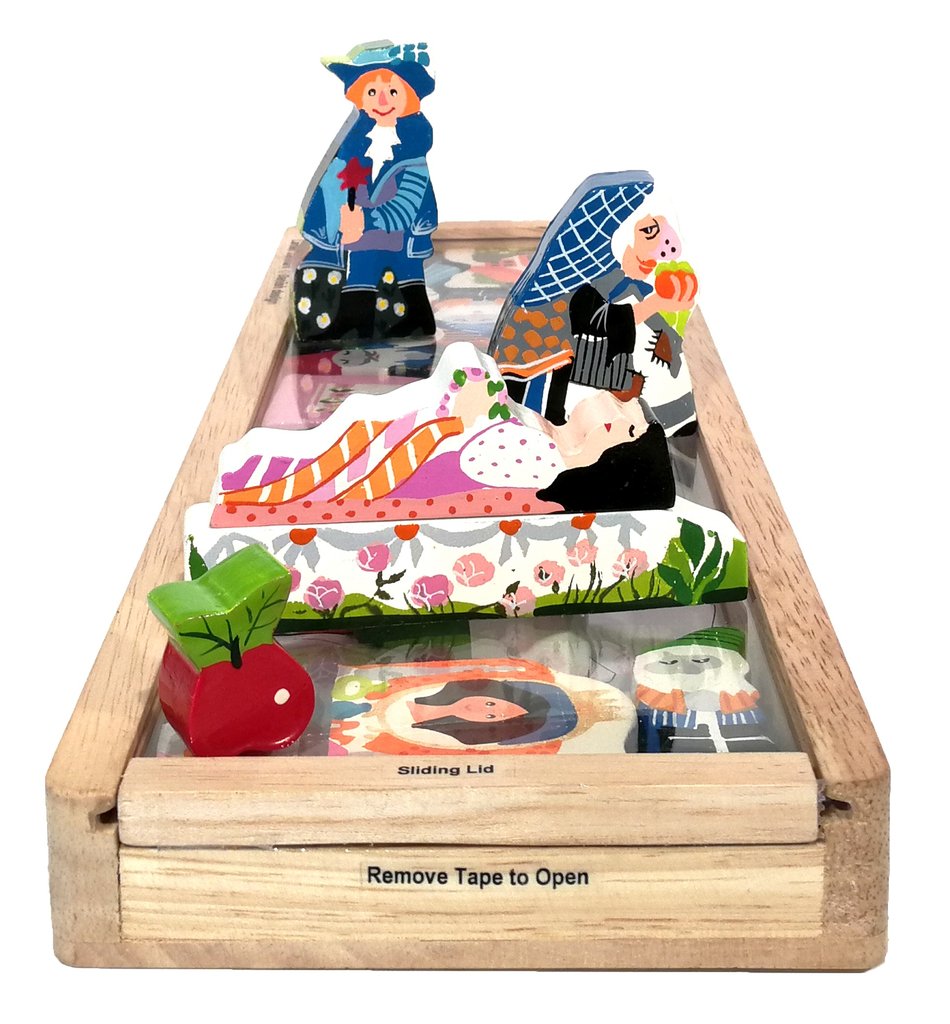 Skønne eventyrklodser af træ med blank overflade og flotte farver, som bringer Snehvide til live for børn helt ned til vuggestuealderen og til indskolingen.At fortælle en historie er en aktivitet, som mennesker har til fælles overalt i verden. Vi fortæller faktisk historier om de samme temaer på kryds og tværs af kulturer - og det er en meget vigtig kompetence at kunne forstå og fortælle en historie med start og slutning.Den opøves ved at gøre det igen og igen og gerne tale om det hele undervejs, stille spørgsmål og give historien ens eget præg. Når børn skal tilegne sig forståelse for historier, er fysiske redskaber en stor hjælp.Dette skønne klodssæt giver børn mulighed for at lege med eventyrets handling, og det er også en virkelig god måde at levendegøre selve eventyret, mens det fortælles. På den måde er fortælleren ikke gemt bag en bog, men aktiv og i tæt kontakt med de lyttende børn, som kan blive deltagende børn i stedet for passive børn.Velegnet både derhjemme og i vuggestuer og børnehaver - eller til mennesker med særlige behov.