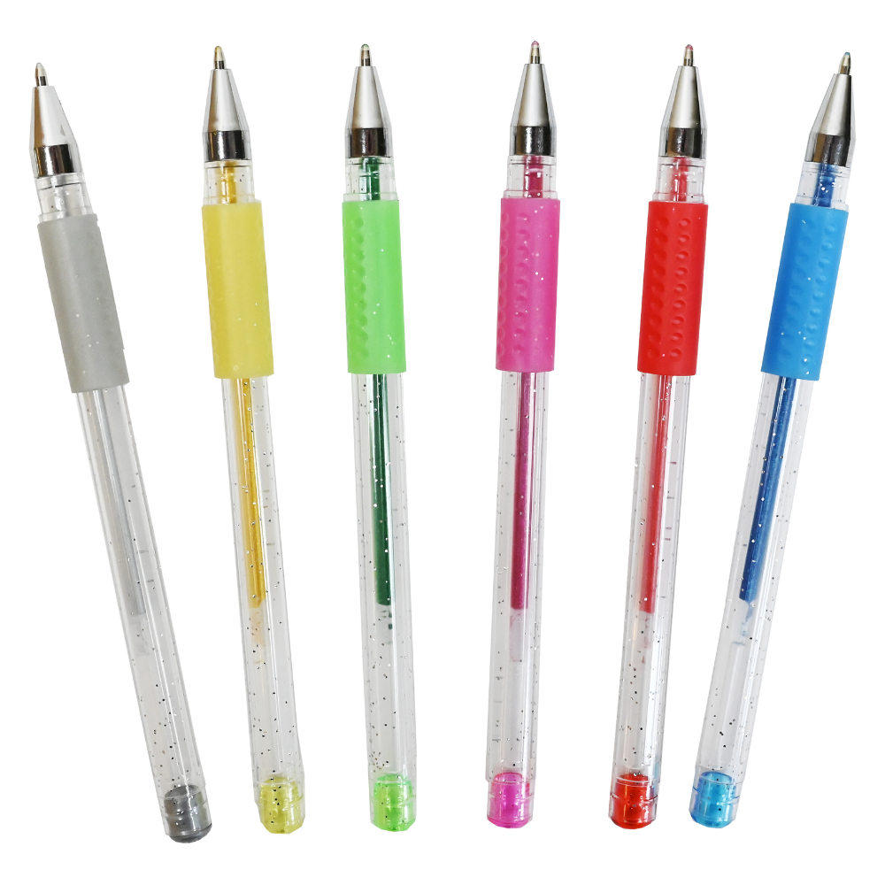 - Gel kuglepenne - Glitter, 6 stk. Er velegnet til Fordybelse og afslapning,Kreativitet,Skrivegreb og passer til aldersgrupperne: 5 år,6 år,7 år,8 år,9 år,10 år,11 år,12 år,13 år,14+ år,Senior