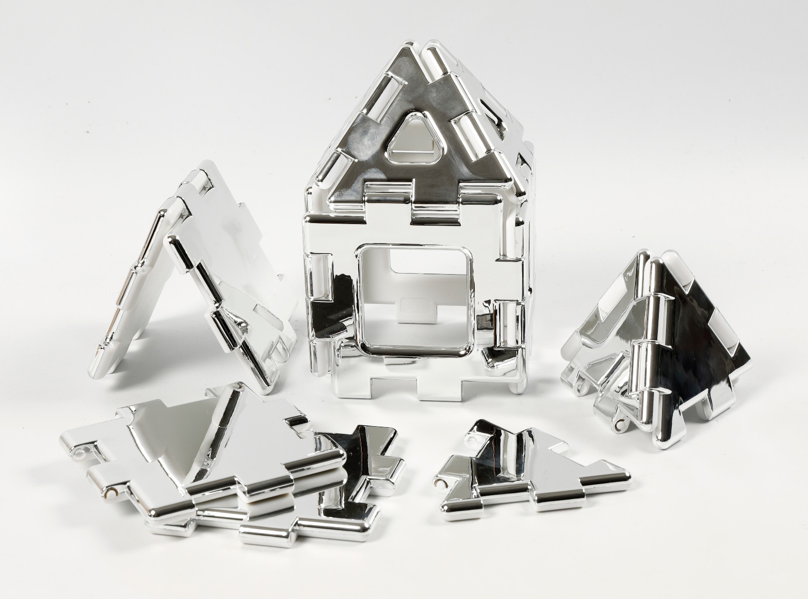 Polydron er meget solidt byggelegelÞj med et sÊrligt design, der gÞr det nemt at sÊtte dem sammen og skille dem ad igen.Dette sÊt på 16 stk har spejle på den ene side, som giver byggelegen en sej stemning af rumstation, spejllabyrint eller eventyr. Det er da ekstra sjovt at bygge, når man samtidig kan se sig selv, hvad der sker bag ved én eller se, hvordan de forskellige vinkler spejler forskellige bidder af omverdenen.Fantasien får fantastiske vilkår, når dit barn bygger med spejl Polydron, og det er oplagt at lade små figurer flytte ind i kreationerne. Her er 4 trekanter, 4 firkanter samt 4 firkanter med kighul og 4 trekanter med kighul.De er lavet af meget solid ABS plast, som holder til årevis af leg i institutioner og nÊrmest et helt liv i privaten. De kan sprittes af eller tÞrres af med en fugtig klud, når spejlene er blevet grumsede.