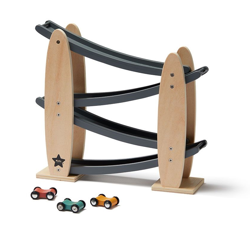 Kid's Concept - Bilbane i træ - Grå. Er velegnet til Finmotorik,Hånd-øje-koordination,Årsag / Virkning og passer til aldersgrupperne: 2 år,2,5 år,3 år,4 år