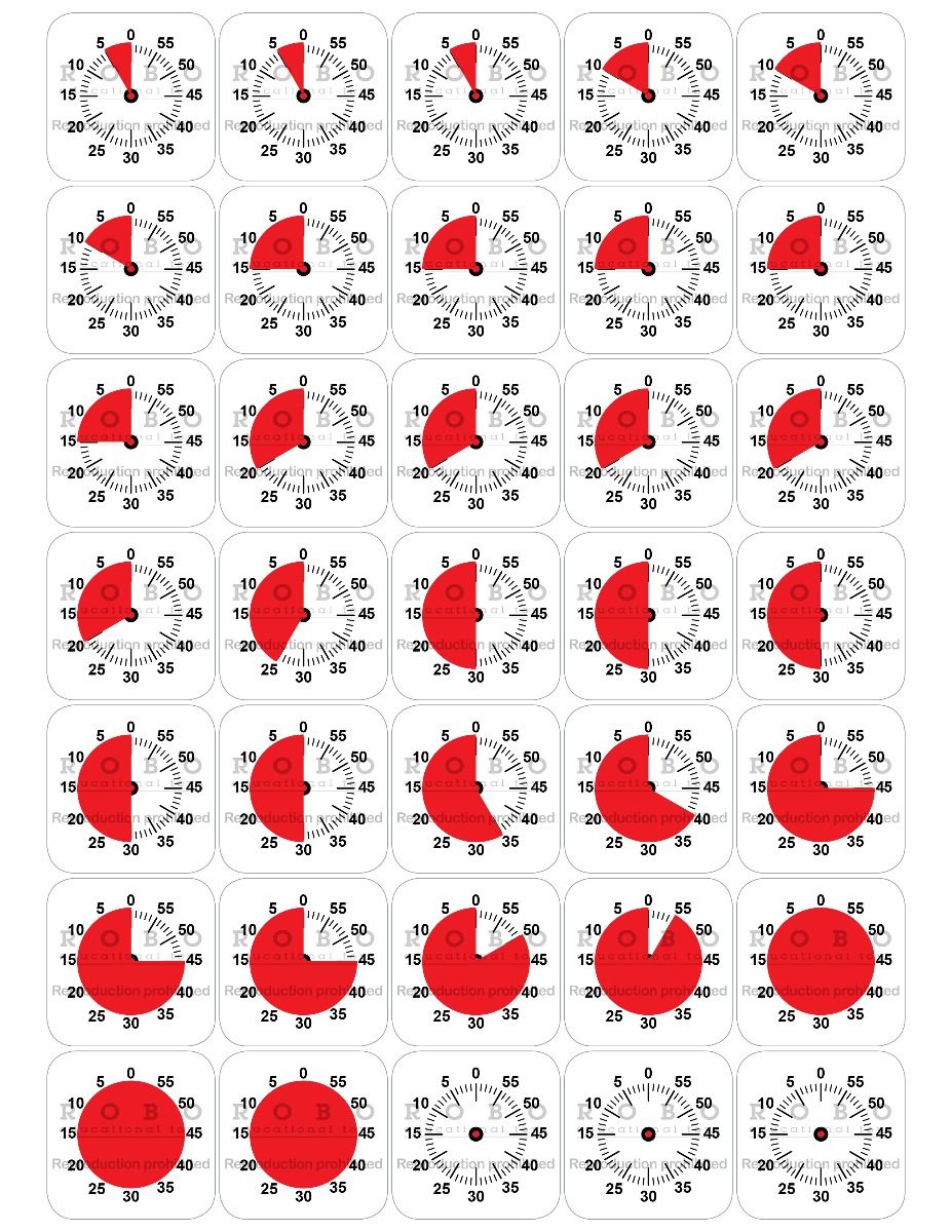 Indstil den røde skive, så den dækker 25 minutter. Nu er urskiven hvid fra klokken 12 og hen til der, hvor der ellers ville stå 35 minutter på et almindeligt ur - for fra 35 og til klokken 12 er der jo 25 minutter.