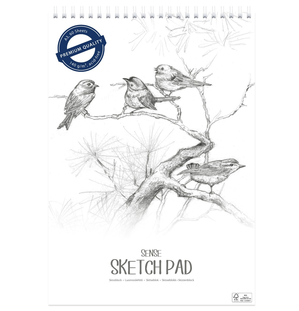 Sense | Skitseblok A3 / 140 gr. - Hvid, 60 ark