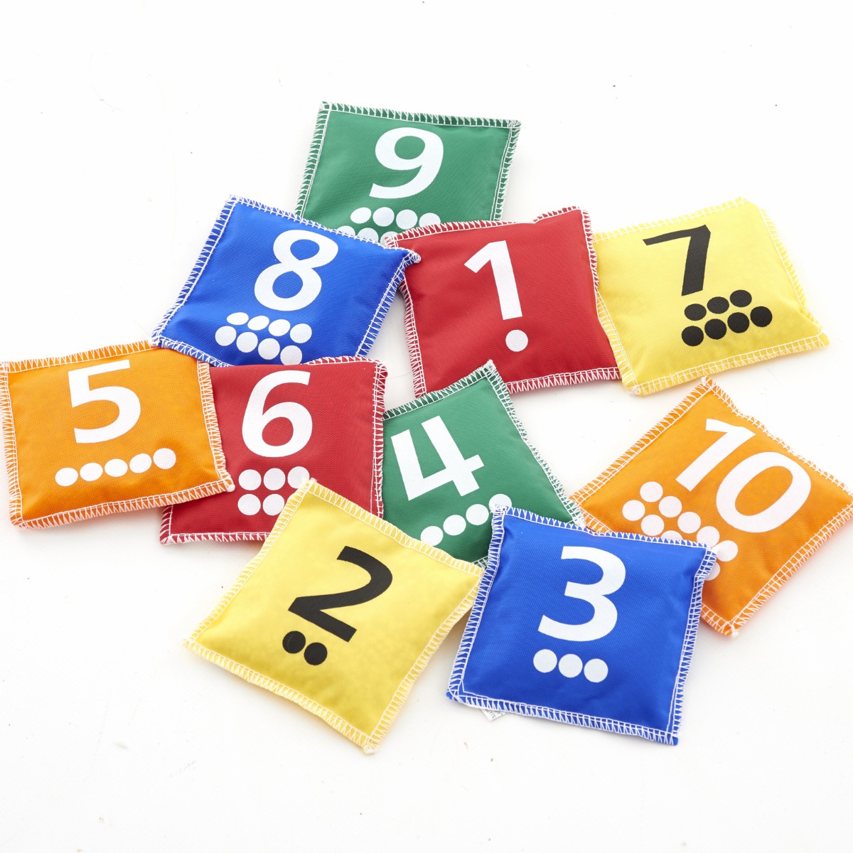 Ærteposer er så oldschool som hinkesten og hoppeelastikker - men de er evigt storsælgende, for de er bare så alsidige som legetøj og træningsredskab.Oplagte til at øve små regnestykker hjemme eller i skolen, hvor det kan være rart at bruge kroppen samtidig, og kaste det rigtige tal. Med prikker der fysisk viser, hvor meget talmængden fylder. De forskellige farver kan du også bruge til leg, hvor I skal bestemme, hvilken farve ærtepose den anden skal kaste med. Det stimulerer dit barns farvegenkendelse. Rengør med en fugtig klud - de tåler desværre ikke en tur i vaskemaskinen.