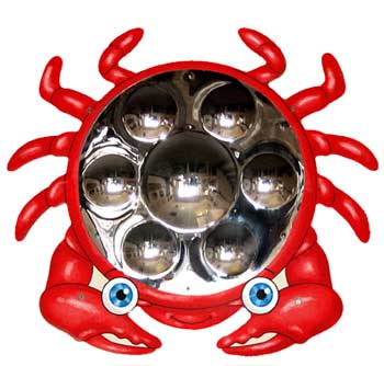 Dette kreative spejlpanel med krabbe-motiv har syv konkave spejle, der skaber fantastiske visuelle effekter. Børn og voksne bliver større eller mindre afhængigt af synsvinklen - en fascinerende oplevelse, der vækker nysgerrighed og undren.