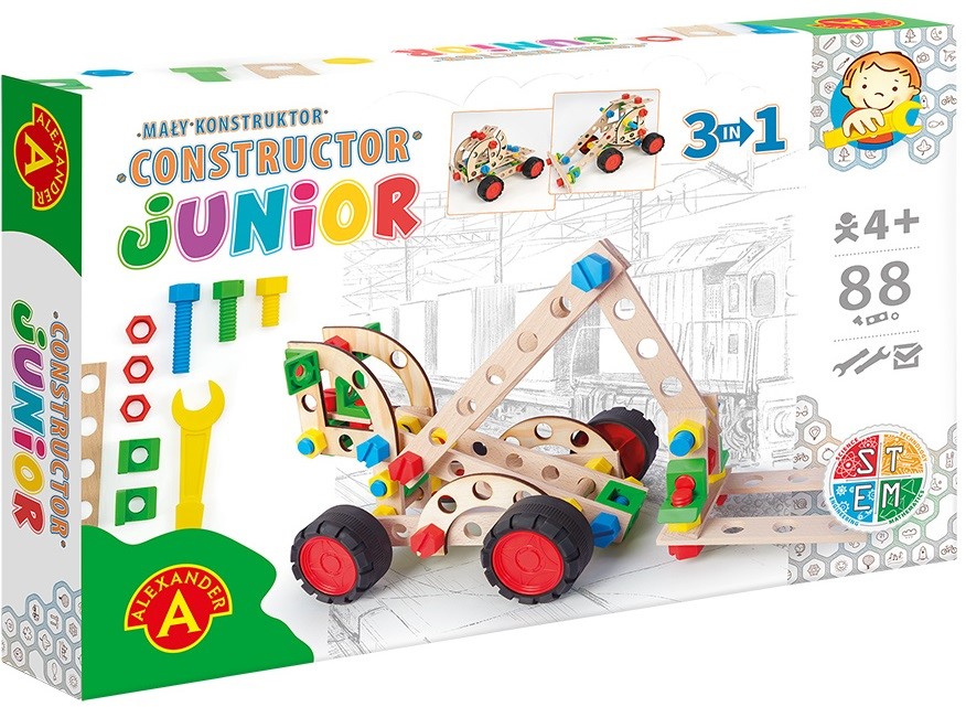 Junior Træ Konstruktionsbyggesæt 3-i-1 Gaffeltruck