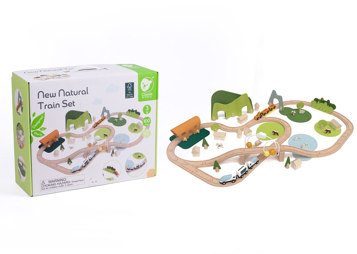 Togbane fra Classic World med en masse sjovt tilbehør. Perfekt til mange timers sjov. - Indeholder: forskellige skinner, bygninger, biler, lokomotiv og meget mere. - Mere end 100 dele. - Xylofon-bro. - Vibrerende spor. - Let for små hænder at gribe om. - Miks og match. - Anskaf hele samlingen. - CE-mærket. - Anbefalet alder: Fra 3 år. - Træ.
