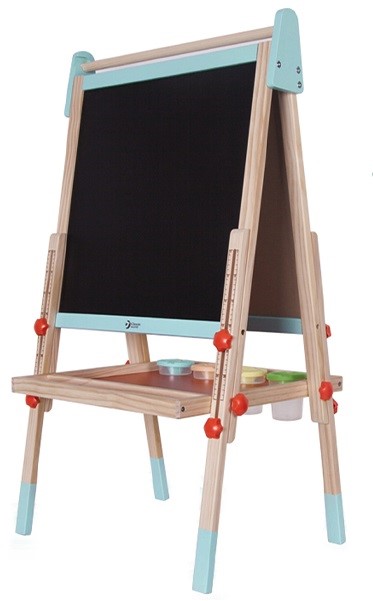 Dette foldbare staffeli har en tavle og en magnetisk tavle, så bųrn kan lave flotte tegninger. Skalaen på siderammerne er til nem hųjdejustering. Den inkluderer plastikmalingsbęgre og magnetiske engelske alfabeter. Det hjęlper dem med at lęre engelsk og u