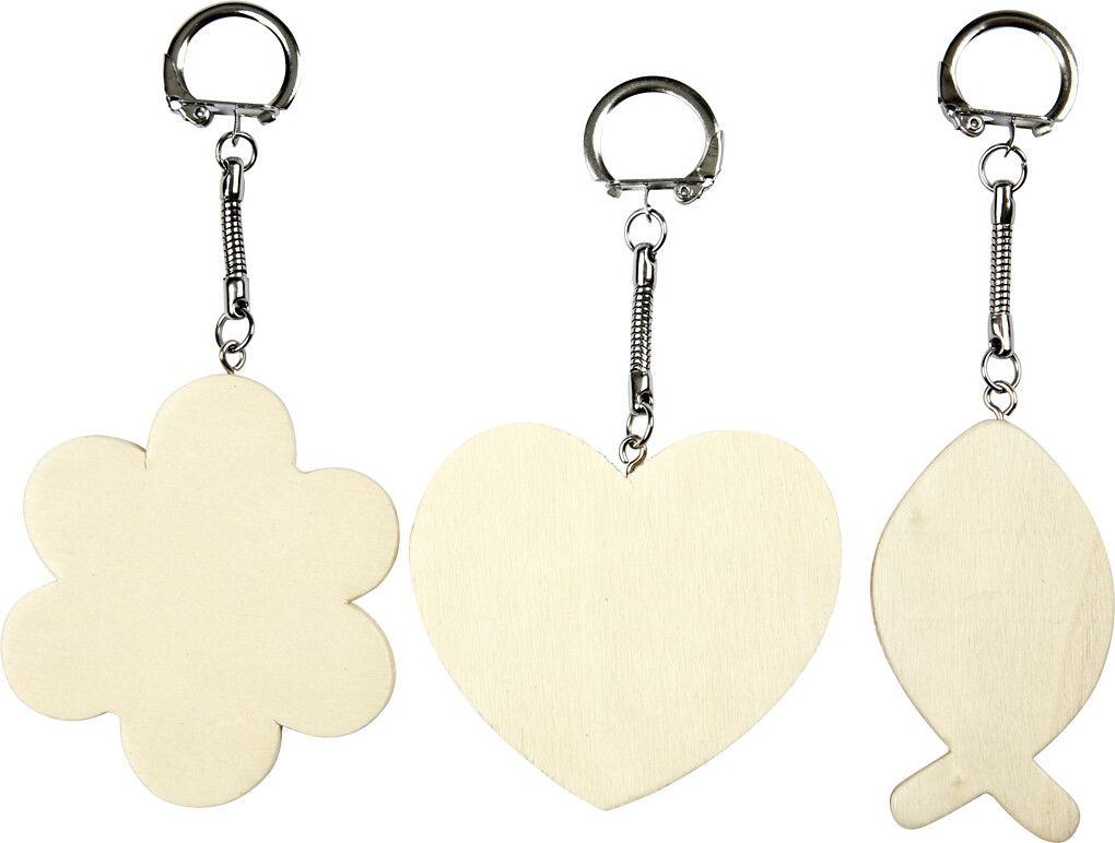 Nøgleringe Med Træskilt - Str. 6-7 Cm - Tykkelse 3 Mm - 3 Stk.
