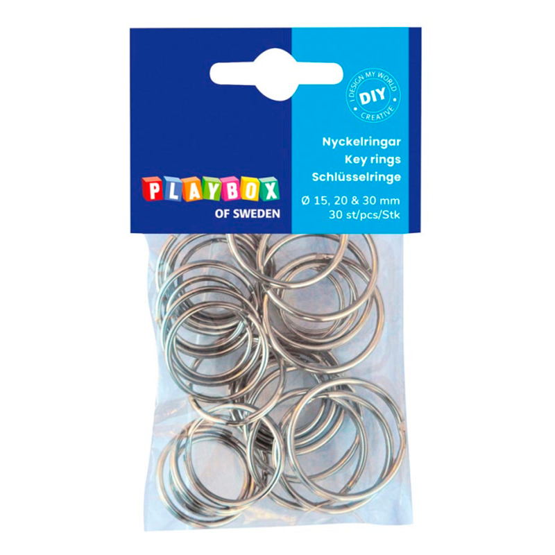 Playbox | Nøgleringe - Tre størrelser, 30 stk