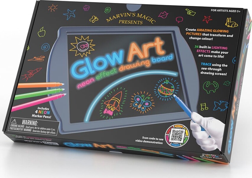 Slip fantasien løs og skab lysende kunstværker med dette magiske tegnebræt fra Marvins Magic! Med Glow Art - Sort kan du tegne og male i mørket og se dine tegninger komme til live i et væld af...