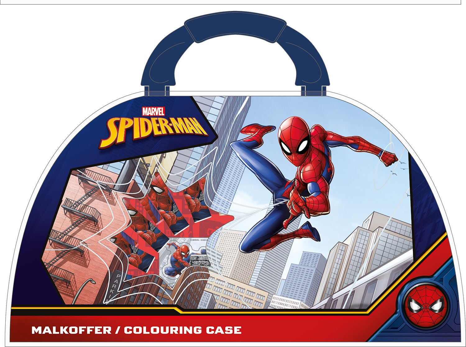 Spider-man malesæt fra UnderCover med et velkendt motiv. Det har et praktisk håndtag, så du kan tage den med hvor som helst. Malesættet indeholder 51 dele med forskellige farver og tilbehør. Perfekt til kreative aktiviteter. CE-mærket. Sættet indeholder 12 farveblyanter, 6 tusser, 24 farvekridt, viskelæder, 2 miniblyanter, blyantspidser, 4 plakater, 1 klistermærkeark. Anbefalet alder: Fra 3 år.