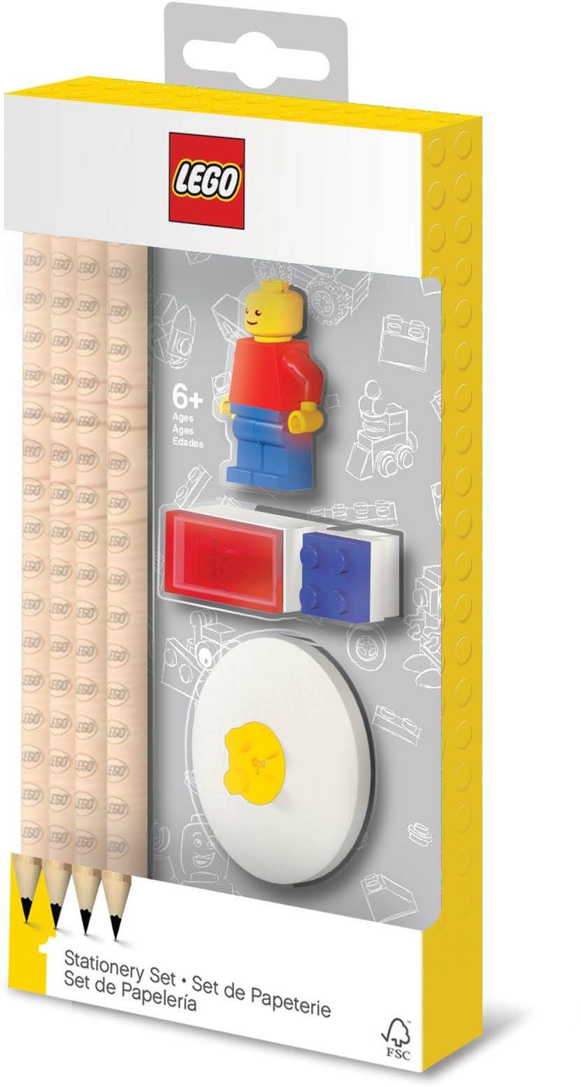 Skrivesæt fra LEGO med et legende design. Det har fire blyanter og et viskelæder. Skrivesættet har en blyantspidser og en LEGO-minifigur, der kan fastgøres på pennene. Perfekt til skolen eller de kreative stunder. Indeholder: Fire grafitblyanter, blyantspynt, et viskelæder, en blyantsspidser og en LEGO-minifigur. LEGO-minifiguren kan fastgøres til blyantspynten. CE-mærket. Anbefalet alder: Fra 6 år.