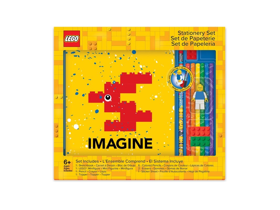 Skrivesæt fra LEGO med et legende design. Det har en skitseblok og blyanter i flotte farver. Skrivesættet har 19 klistermærker, en LEGO-minifigur, der kan fastgøres på pennene og andet sjovt tilbehør. Perfekt til skolen eller de kreative stunder. Indeholder: en skitseblok, en blyant, seks farveblyanter, to viskelædere, 19 klistermærker, to LEGO-klodser og en LEGO-minifigur. LEGO-minifiguren kan fastgøres på blyanterne med hjælp af de to LEGO-klodser. Skitseblokken måler 18x23 cm og indeholder 128 sider. CE-mærket. Anbefalet alder: Fra 6 år.